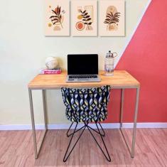 Mesa Para Escritório De Ferro E Madeira 96cm Style Industrial Nozes E