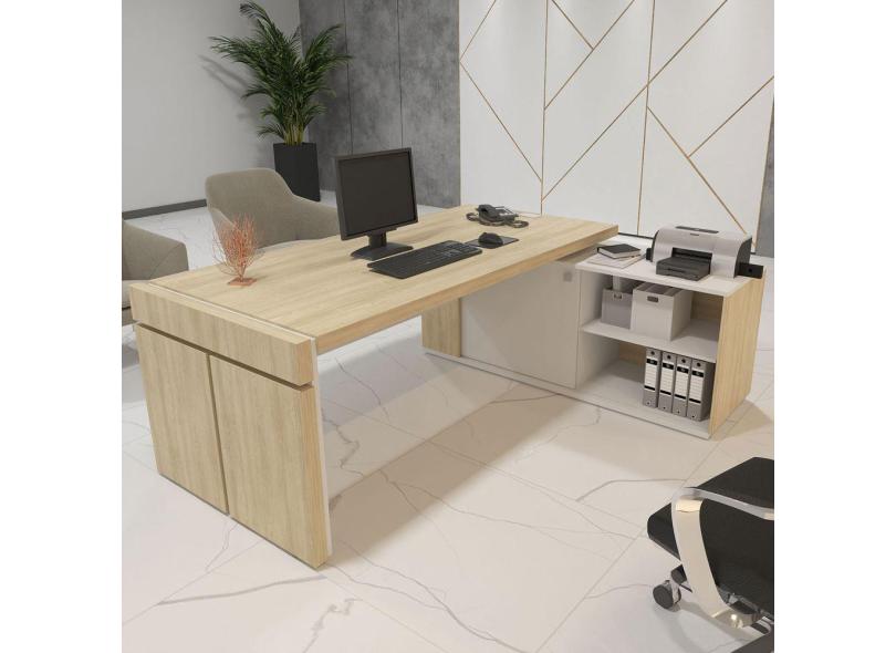 Mesa Para Escritório Diretor Connect Iii 1 Porta 2 Prateleiras Carvalho/branco - Artany Móveis