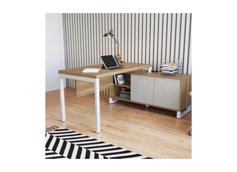 Mesa Para Escritório Diretoria Em L C/ Balcão 2 Portas 136cm Nobile Ho