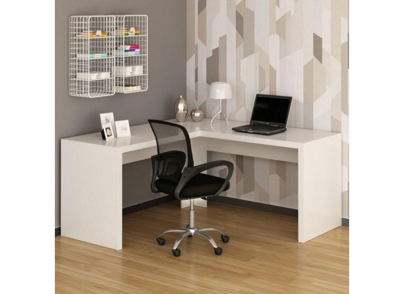 Mesa para Escritório em L Angular Me4116 com Cadeira Diretor Tela Mesh Tok 3310 Branco