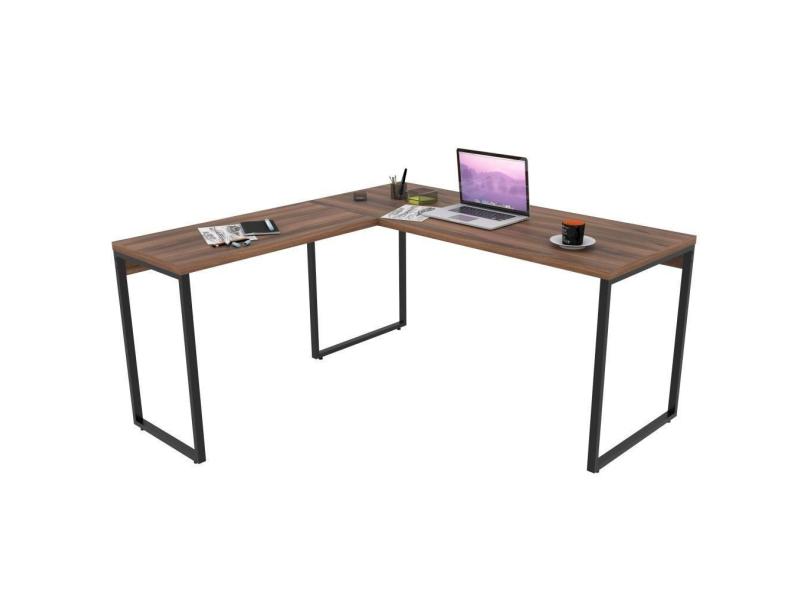 Mesa Para Escritório Estilo Industrial Em L 150x150cm Nogal