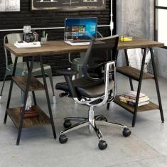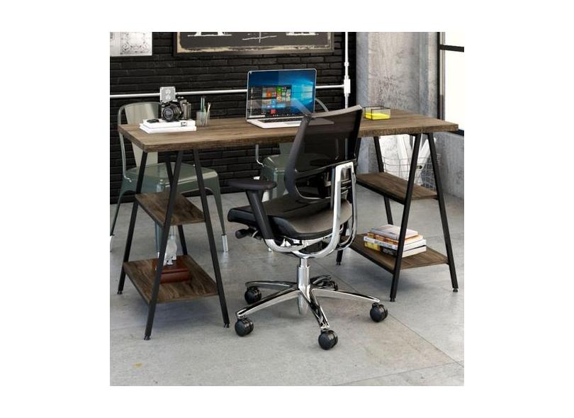 Mesa Para Escritório Kuadra 4 Prateleiras Carvalho Dark - Compace