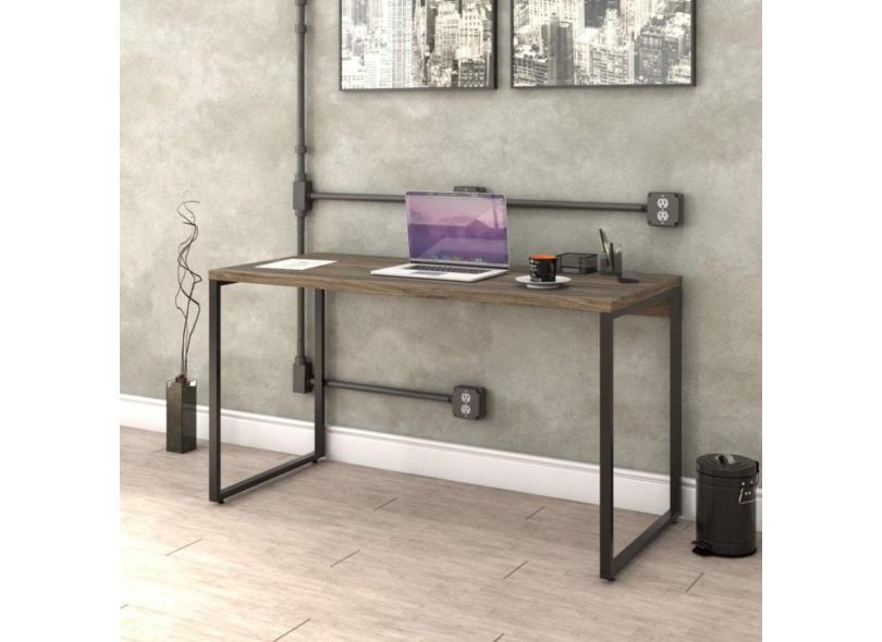 Mesa Para Escritório Office Estilo Industrial 135Cm Kuadra Compace Carvalho Dark