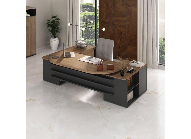 O menor preço encontrado no Brasil para Mesa para Escritório Presidente Tamburato 2600cm com 4 Gavetas e 2 Portas e Design em U Nogal/Preto atualmente é R$ 2.999,98.