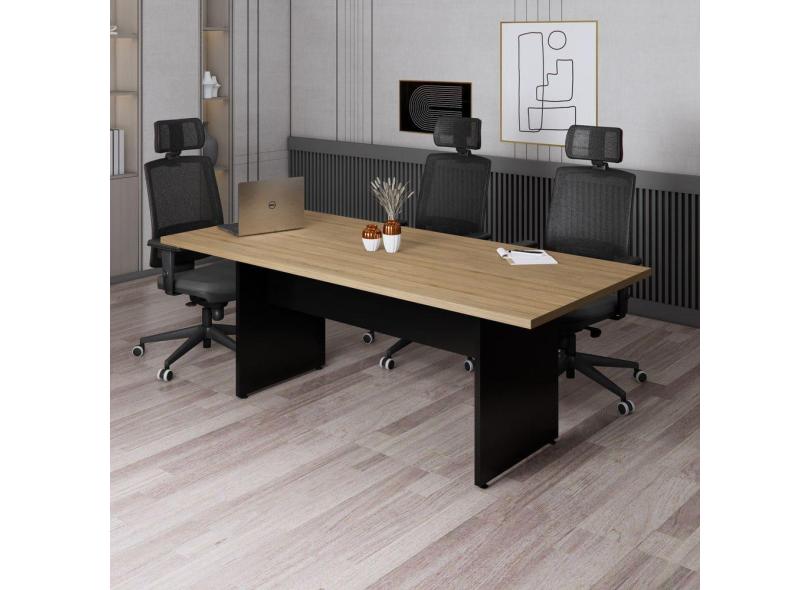 Mesa para Reunião Retangular 200x900cm Amadeirado/Preto
