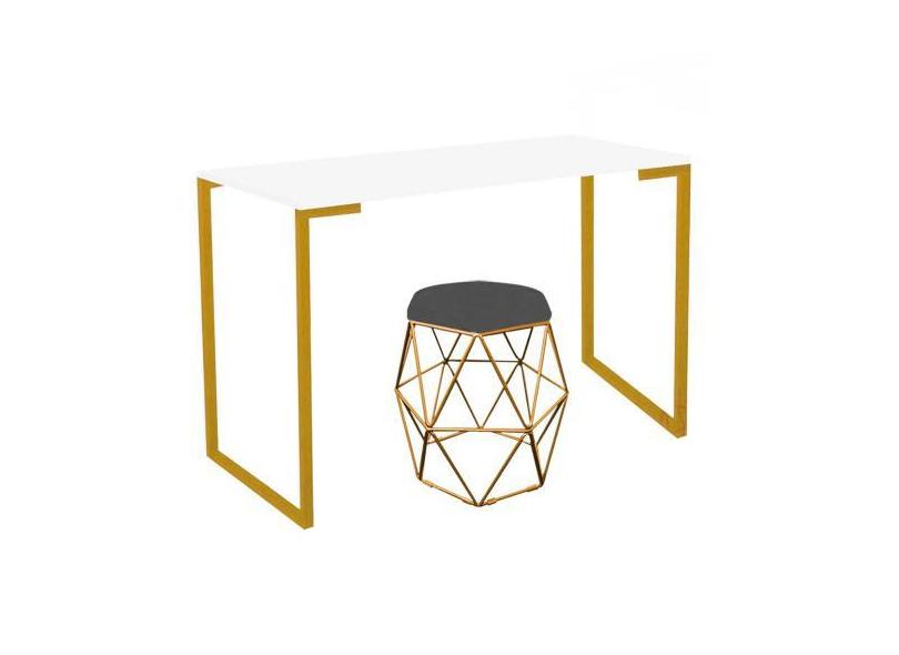 Mesa Stan Industrial Escritório E Home Office Com Puff Luna Suede Cinz