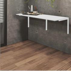 Mesa Suspensa de Estudos Parede 120cm Escritório Suporte Branco MDF Branco - Ahazzo Móveis