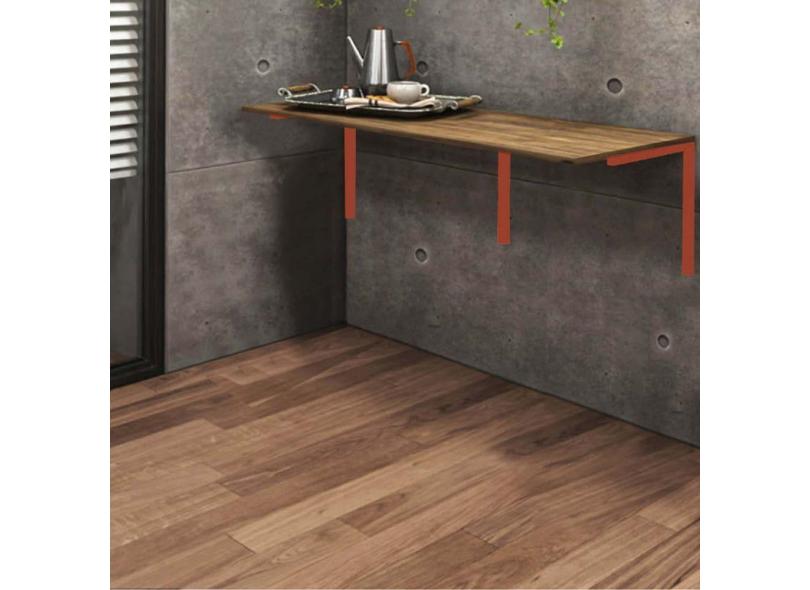 Mesa Suspensa de Estudos Parede 120cm Escritório Suporte Bronze MDF Carvalho - Ahz Móveis