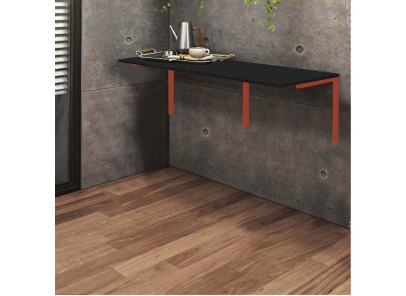 Mesa Suspensa de Estudos Parede 120cm Escritório Suporte Bronze MDF Preto - Ahz Móveis