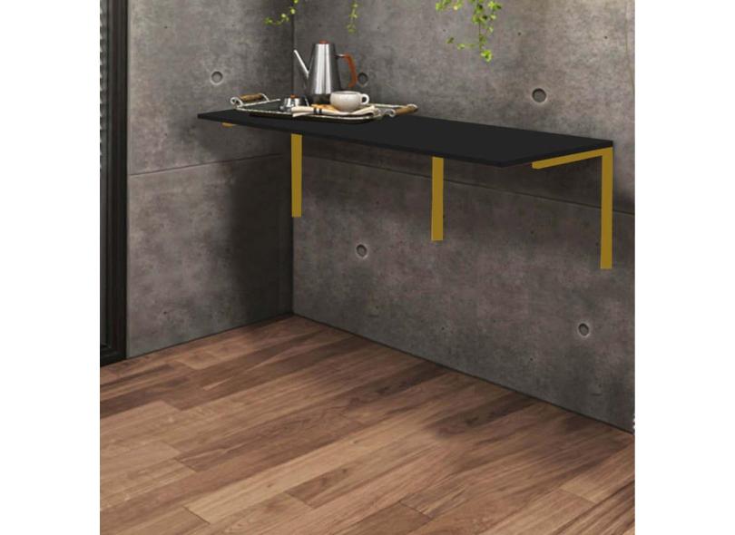 Mesa Suspensa de Estudos Parede 120cm Escritório Suporte Dourado MDF Preto - Ahazzo Móveis
