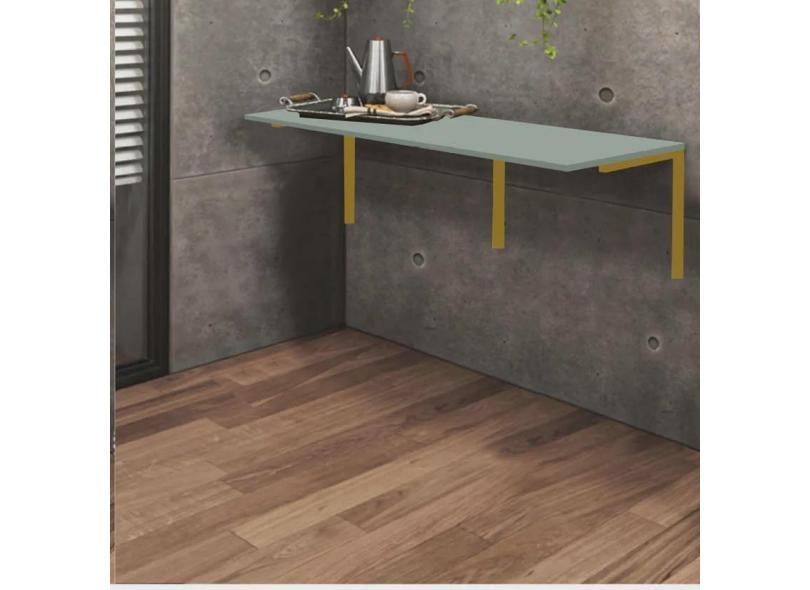 Mesa Suspensa de Estudos Parede 120cm Escritório Suporte Dourado mdf Verde Oliva - Ahazzo Móveis