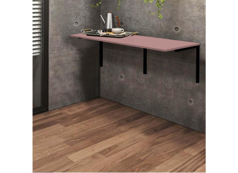 Mesa Suspensa de Estudos Parede 120cm Escritório Suporte Preto MDF Rose - Ahazzo Móveis