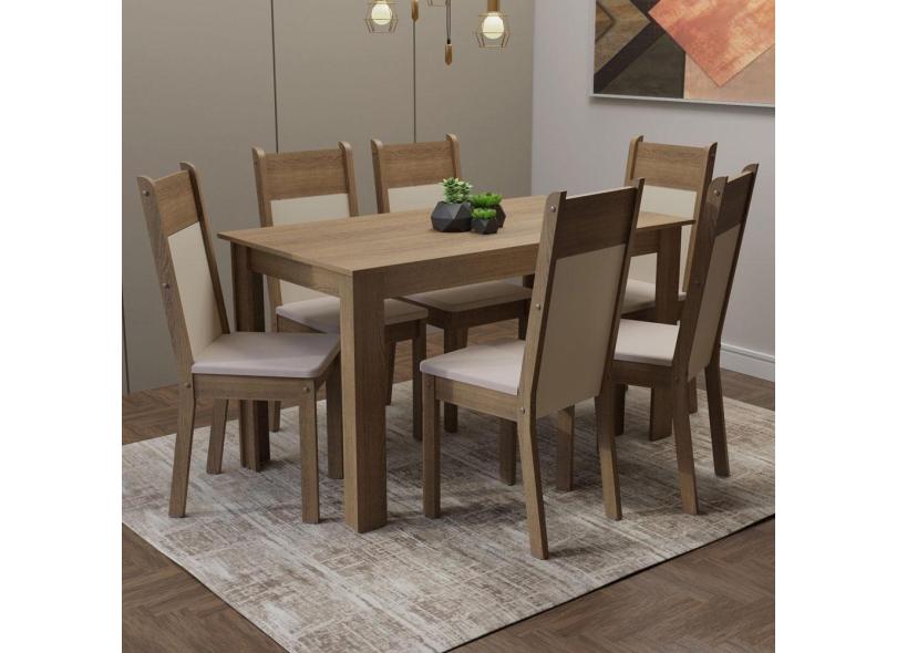Mesa Tampo de Madeira com 6 Cadeiras Rustic Crema Bege Rustic