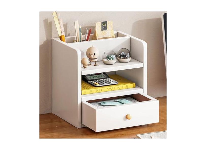 Prateleira organizadora de mesa de madeira para mesa, escritório ou balcão – estante de armazenamento de escritório para materiais de escritório, acessórios de mesa