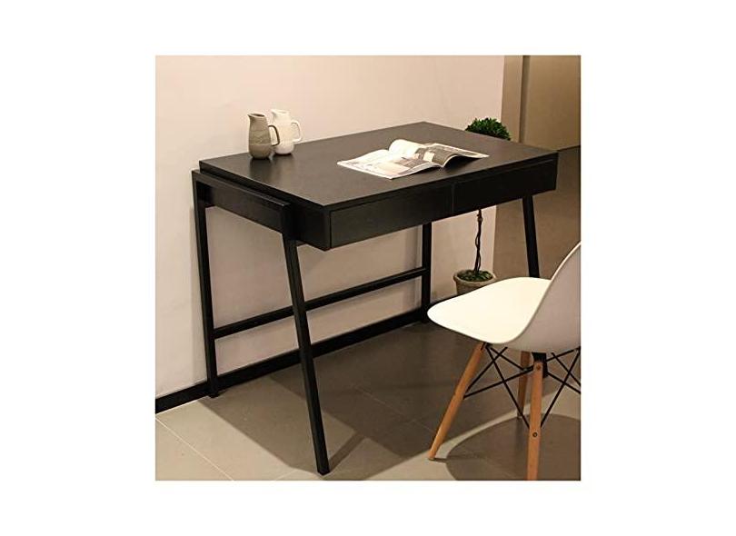 TOMYEUS Mesa de estudo de computador simples PC mesa de laptop para espaços pequenos mesa de estudo compacta pequena mesa de estudo de estudo, estrutura de aço estável, branco/preto escrivaninha para escritório em casa