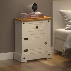 Mesa de Cabeceira 1 Gaveta 1 Porta Smile Móveis Serpil Creme/Carvalho