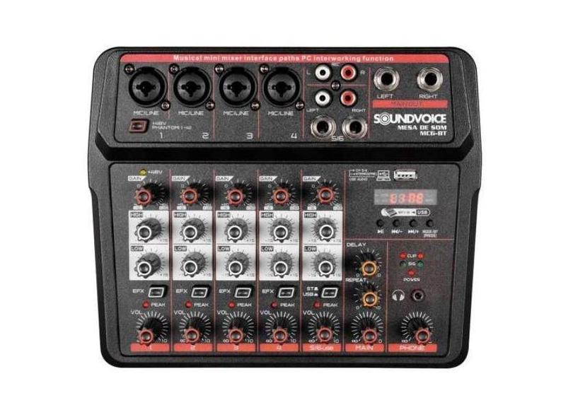 Mesa De Som Soundvoice 6 Canais Mc6Bt Usb Bivolt