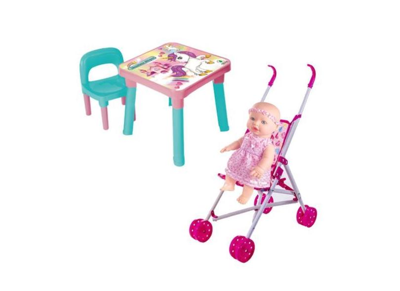 O menor preço encontrado no Brasil para Mesa C/Cadeira Infantil Unicórnio + Boneca Sapeka E Carrinho - Monte L atualmente é R$ 278,95.