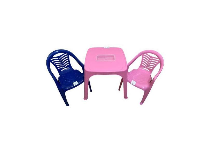 Mesa Infantil Rosa + 02 Cadeira Infantil Az/ro Plasnorthon, Azul