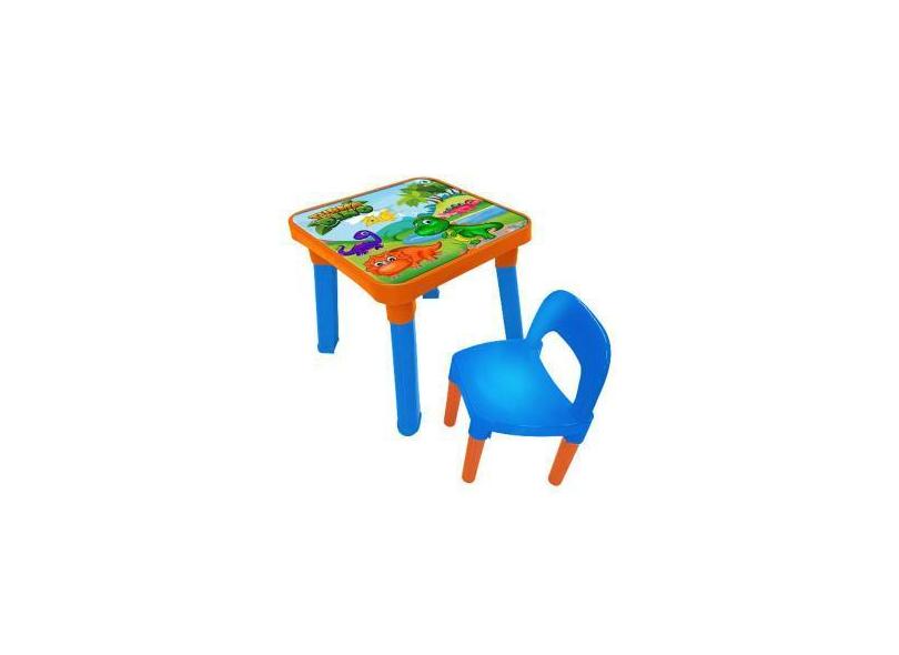 Mesinha Com Divisórias E Cadeira Dino - Criança Mesa Bebê Menino Azul