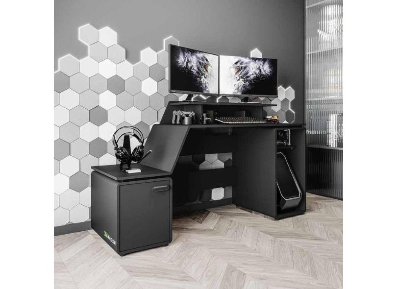 Mesa Gamer E Escritorio Space Two - Preto/logo Verde
