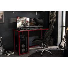 Mesa Gamer Singapura Preto e Vermelho Politorno