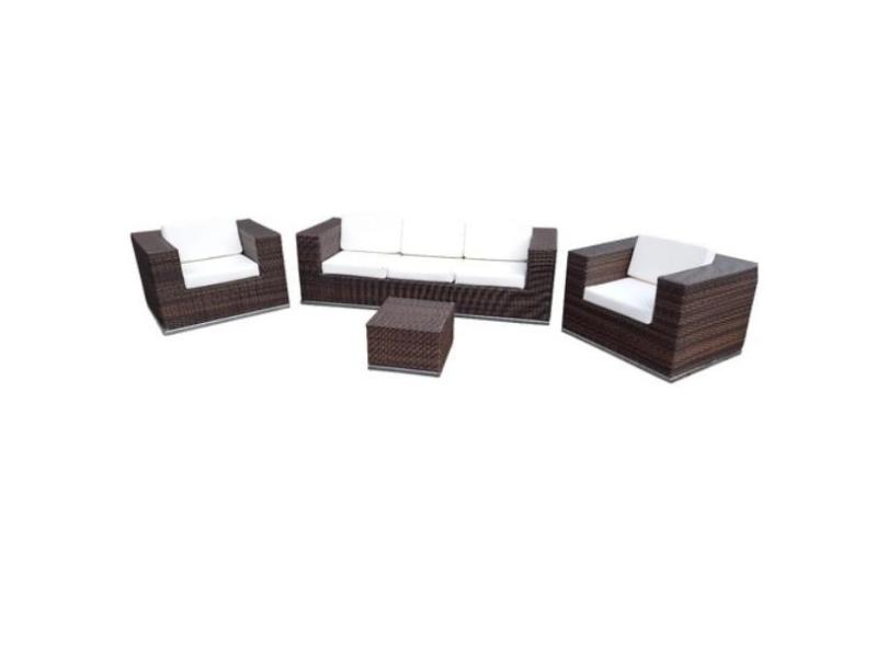 Conjunto De Sofá Fibra Sintética Quadrado - 1 Sofá 3L + 2 Poltronas + 1 Mesa Centro - Tecido Duna Cru
