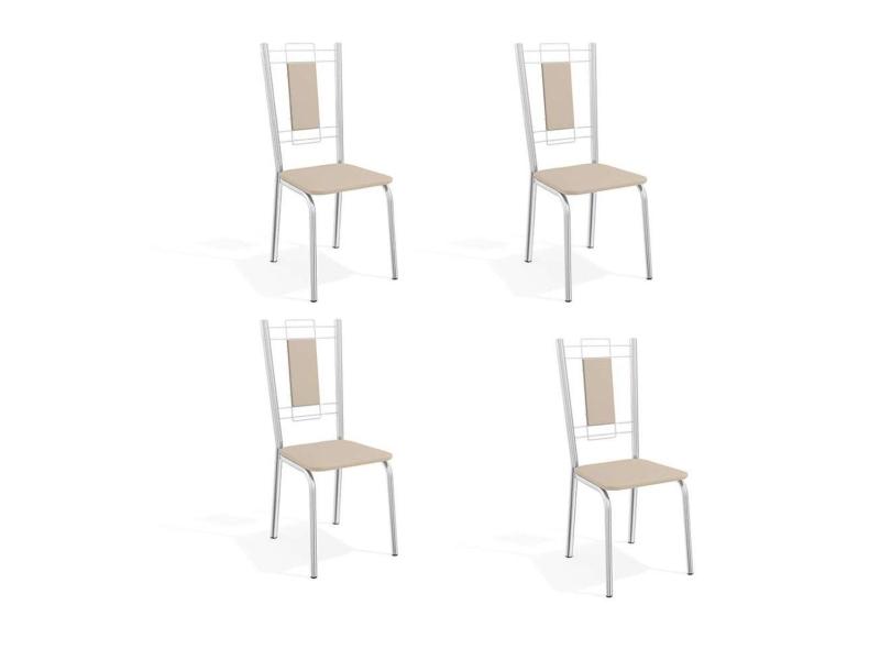 Conjunto Com 4 Cadeiras De Cozinha Florença Cromado E Nude
