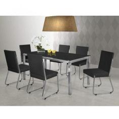 Conjunto Sala de Jantar Mesa Olivia 6 Cadeiras Deise Siena Móveis /Prata