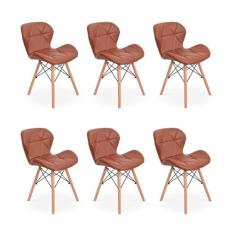 Kit 06 Cadeiras Charles Eames Eiffel Slim Wood Estofada - Marrom