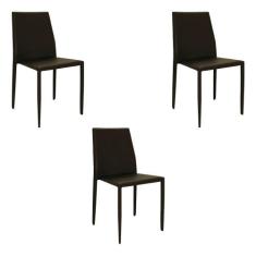 Kit 3 Cadeiras Decorativas Sala e Cozinha Karma PVC Marrom - Gran Belo