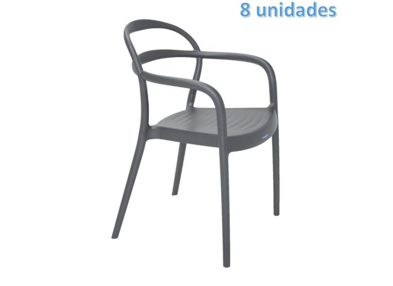 Kit 8 Cadeiras Plastica Monobloco Com Bracos Sissi Grafite Tramontina