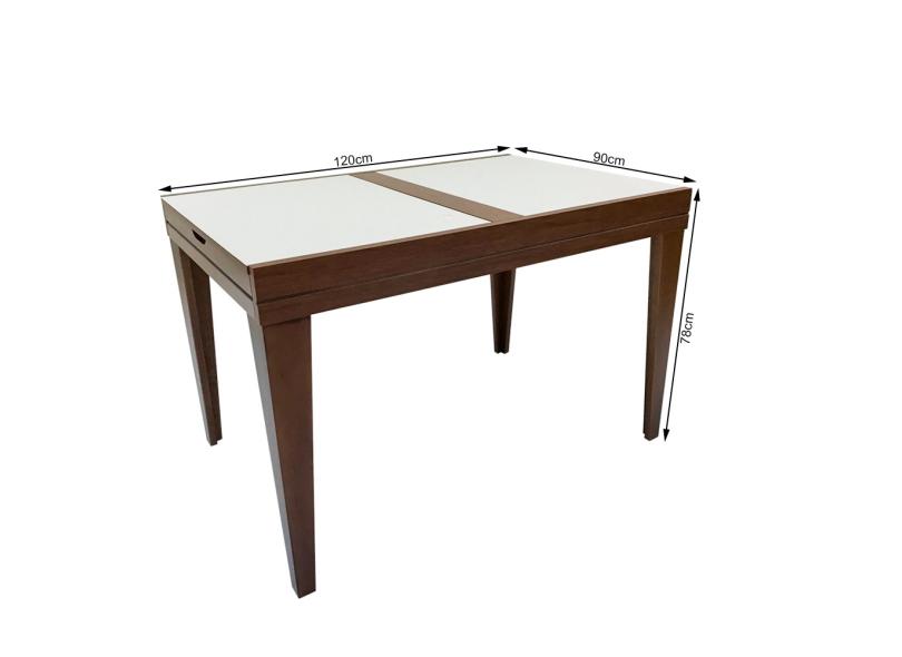 Mesa de Jantar Paris Extensível de Madeira Imbuia com Vidro Off White 1,40/2,00