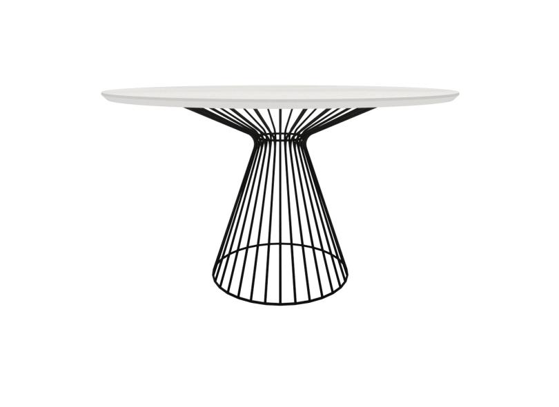 Mesa de Jantar Redonda 150Cm La Henrique Base Metal Raiado Tampo Mdf e Vidro