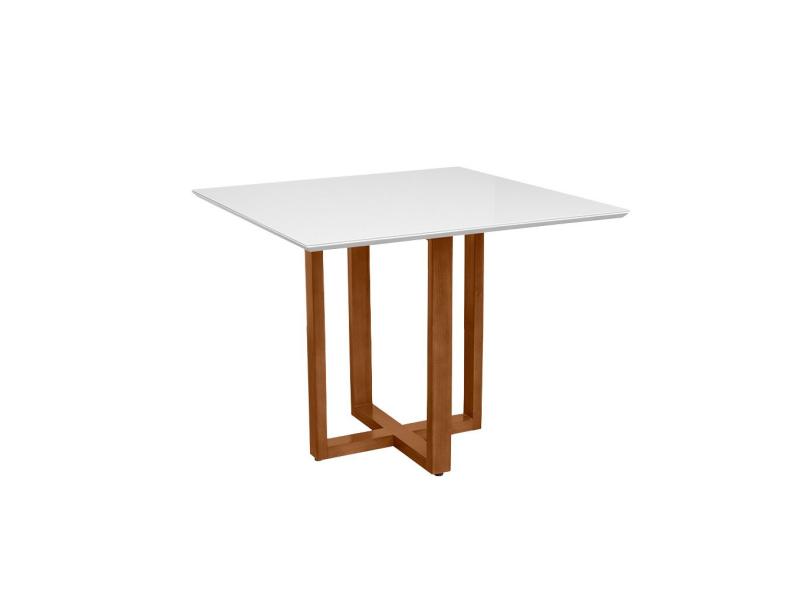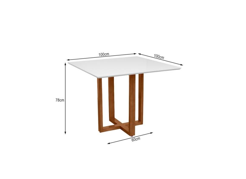 Mesa Quadrada de Jantar Base Madeira Mel Tampo Chanfrado Off White 100x100 Sofia