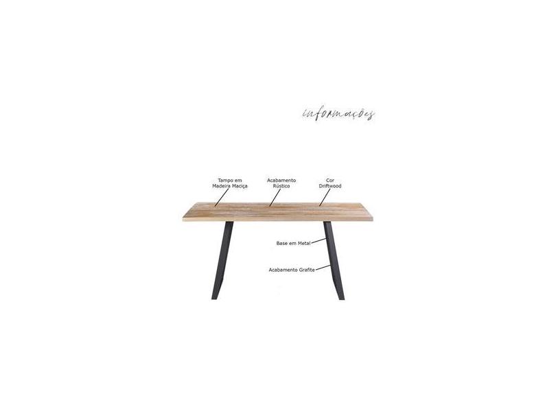 Mesa Sala de Jantar 190cm Grafite Madeira Maciça Driftwood