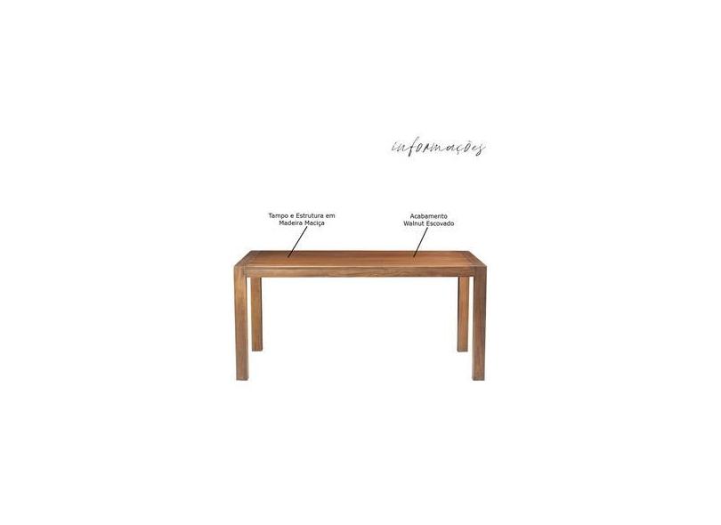Mesa Sala de Jantar 190cm Madeira Maciça Walnut Escovado