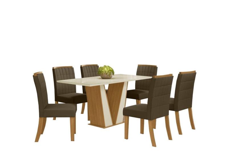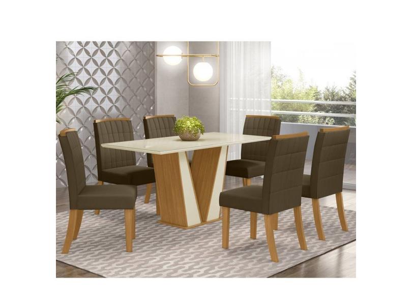 Sala de Jantar Mesa Garda 1600mm Nature/Off White com 6 Cadeiras Tauá Nature/Bege - Móveis Henn