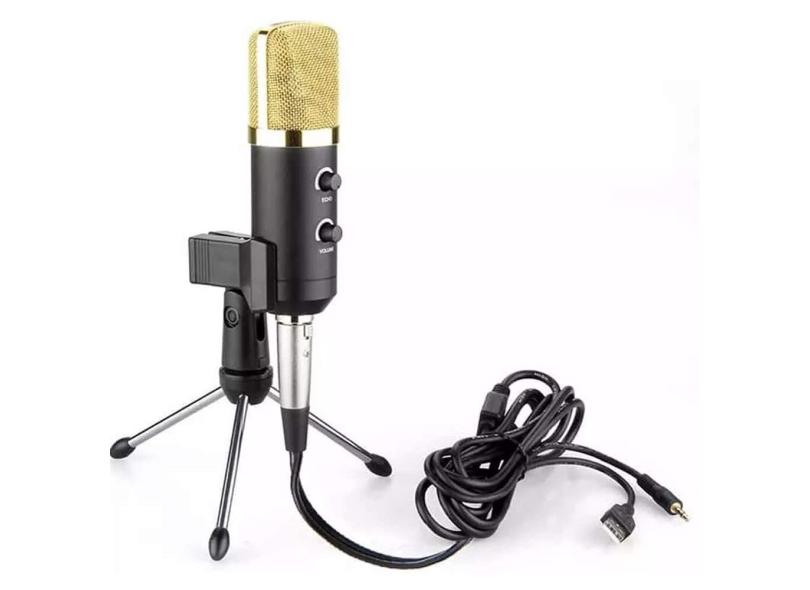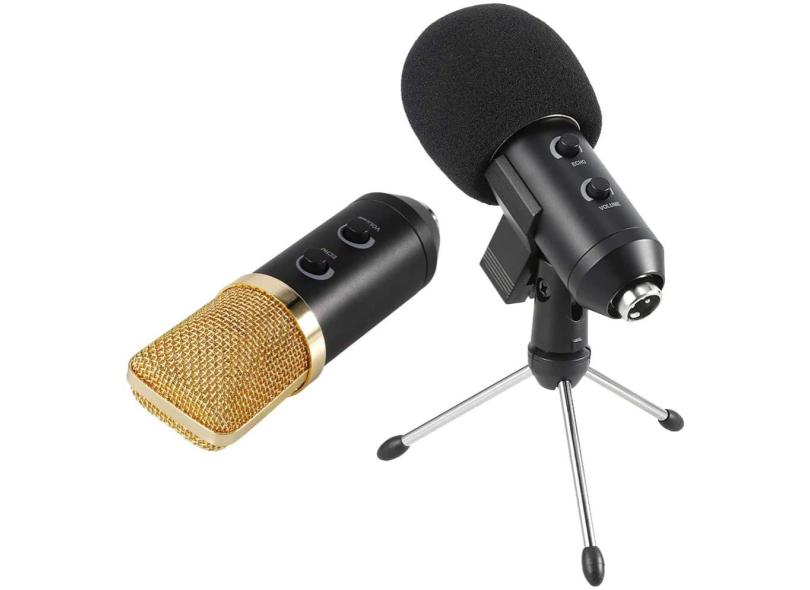 Microfone Condensador Profissional Usb Estúdio Gravação Youtubers Bm100Fx Suporte Articulado e Tripé