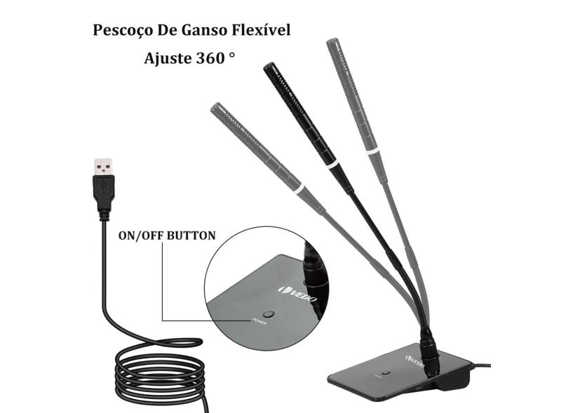 Microfone de Reunião Gooseneck VEDO VD-5 Conferência de Mesa Haste Flexível