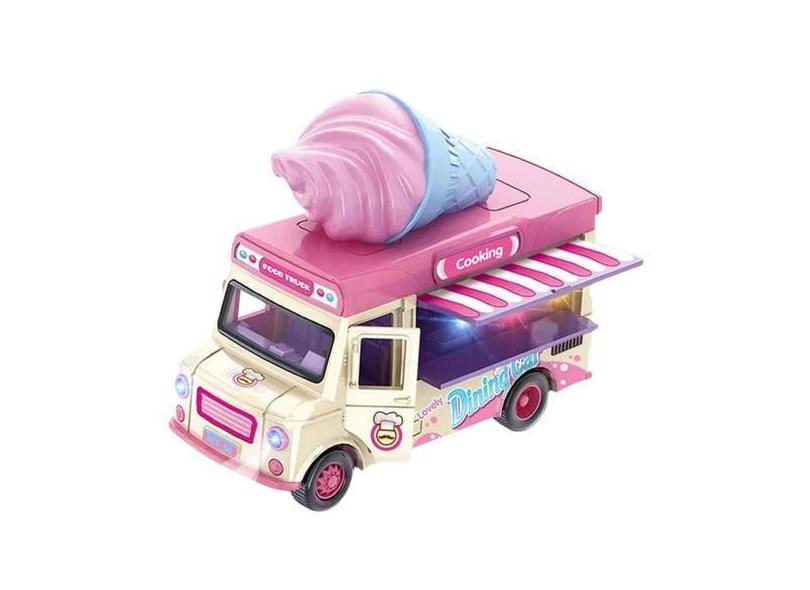 Carrinho De Ferro A Fricção Miniatura Colecionador Food Truck Com Luz