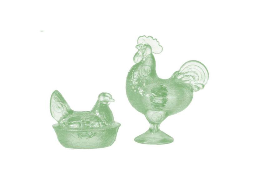 Casa de bonecas em miniatura, crisênon, galo e galinha nidificante, verde