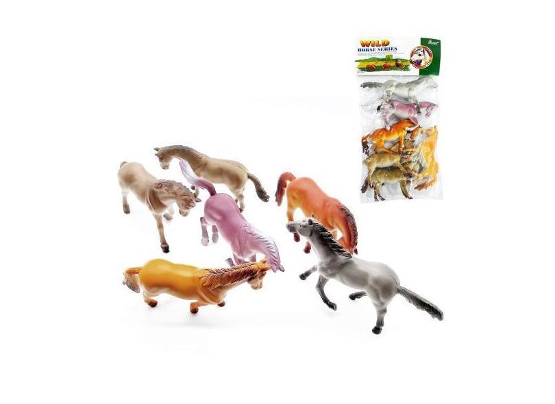 Coleção 6 Miniaturas Cavalos Selvagens Animais De Brinquedo Em Borrach