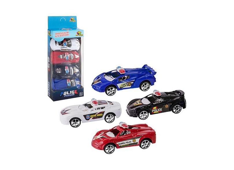 Conjunto 4 Carrinhos Miniatura De Policia Com Fricção - Art Brink