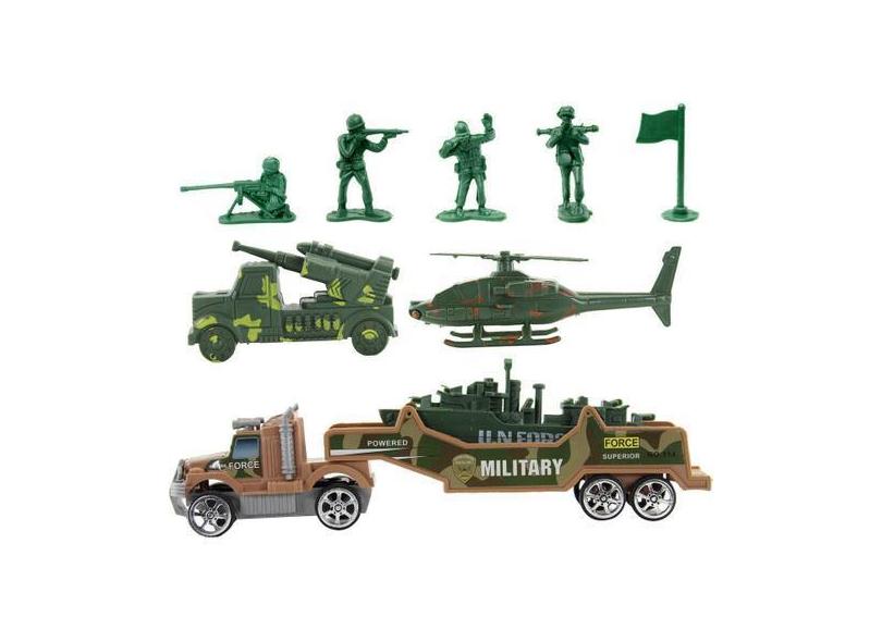Conjunto Veículos Militares Verdes Miniatura 9 Peças - Gici Kids