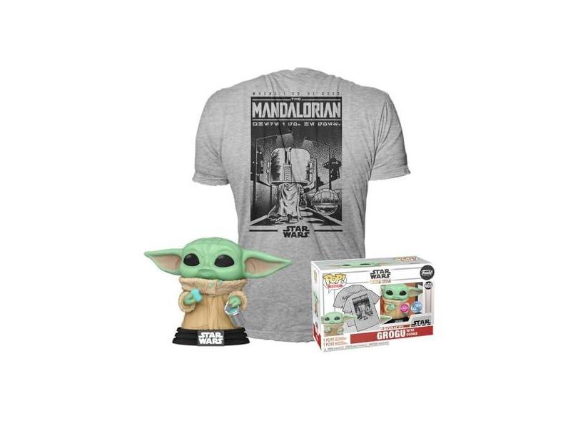 Funko Pop The Mandalorian 465 Grogu Flocked + Camiseta GG