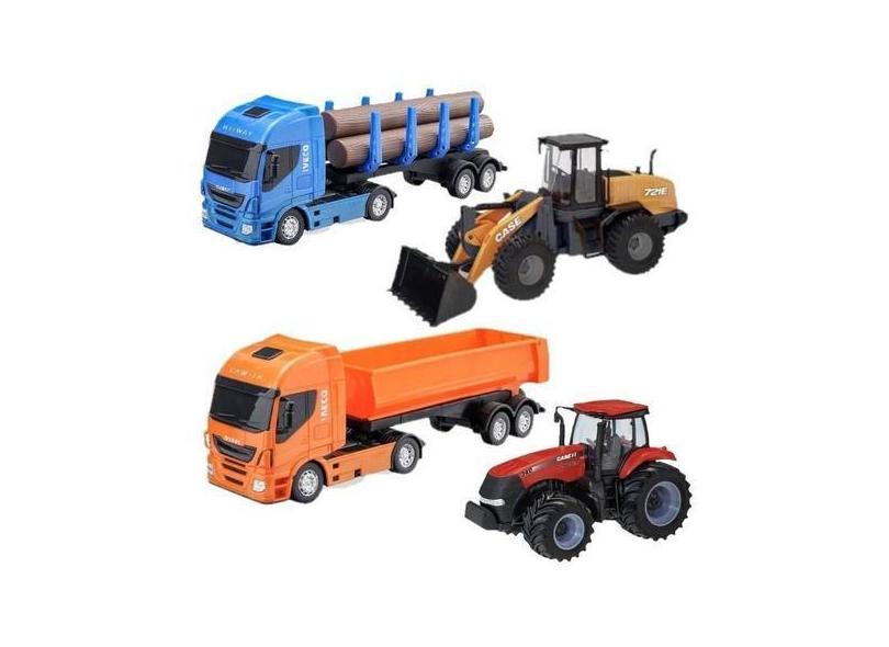 Kit 2 Caminhão Iveco + 2 Trator Case Carregadeira Miniatura - Usual Br