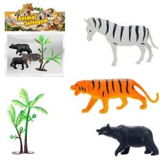 Kit 3 Peças Animais Selvagens Plástico Miniatura Pequena Zoológico E