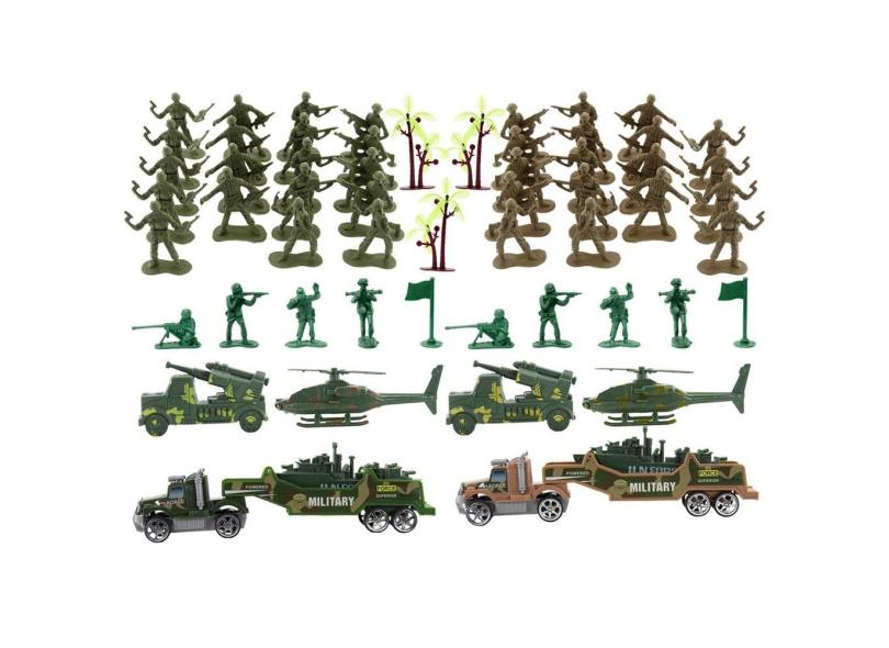 Kit brinquedos veículos militares Soldados miniatura 58 Pçs