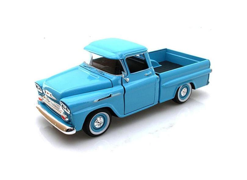 Pickup Chevy Apache, azul claro, carro de brinquedo modelo fundido sob pressão 1/24